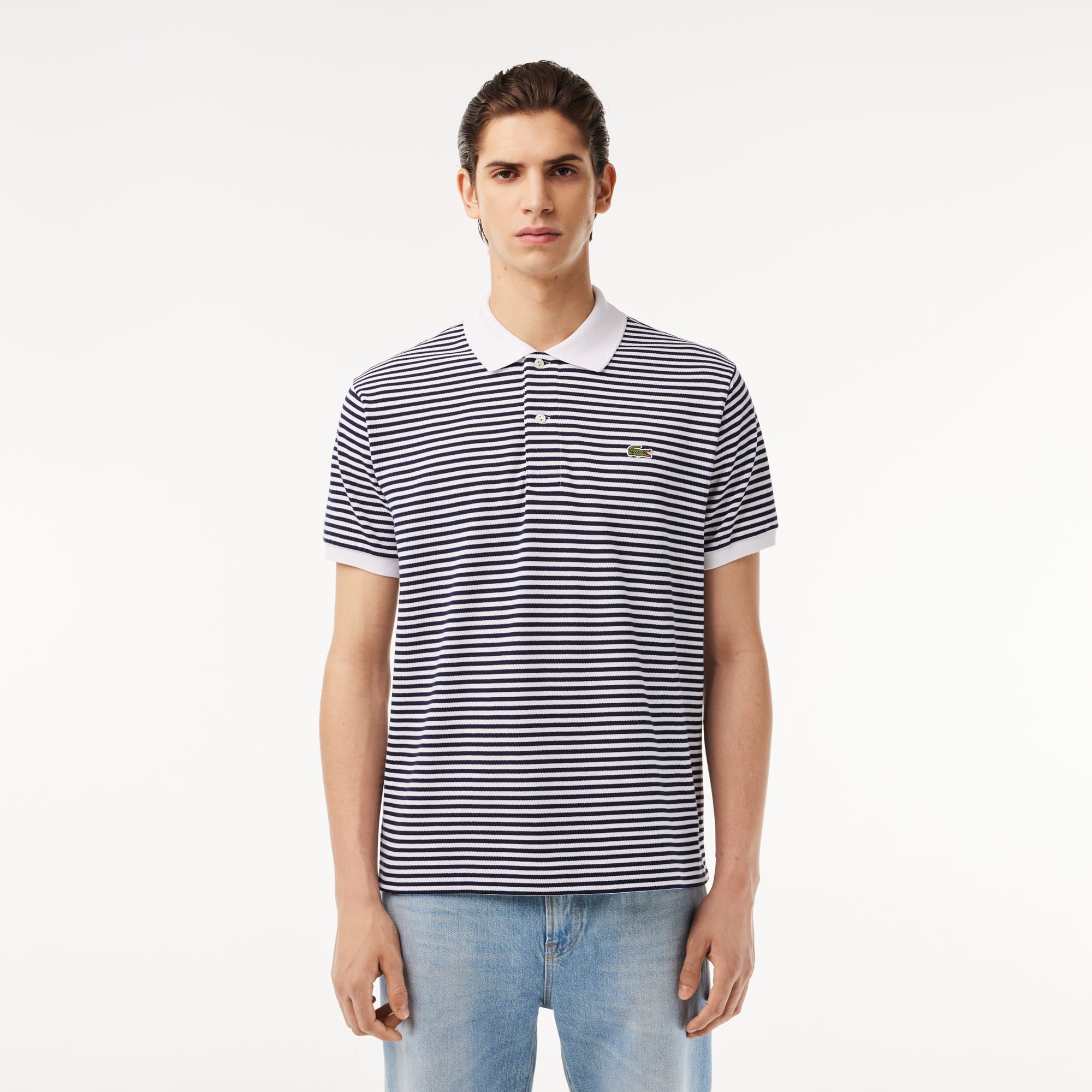 Polo lacoste original l.12.12.de algodón con rayas